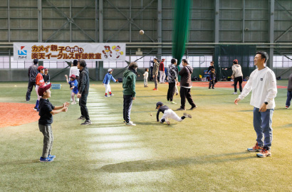 2025年11月30日(日)、楽天モバイルパーク宮城室内練習場にて、「カメイ親子ふれあい楽天イーグルス野球教室」が開催されました。
